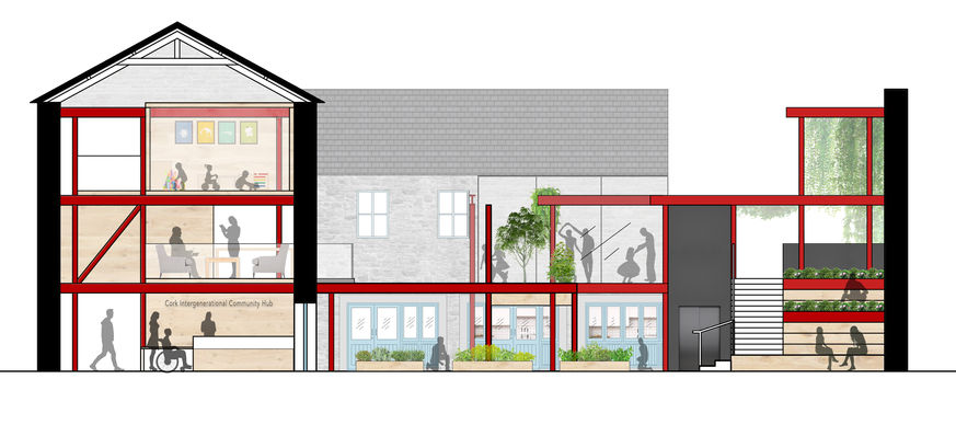 The Intergenerational Community Hub is located in Wandesford Quay, originally used in the 1840s as a grain store for the nearby distillery. The building is noted for its important location, carefully retained fabric and a surviving industrial building on the quayside.